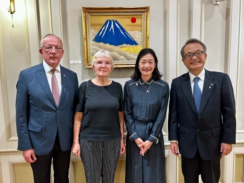 On September 17, Ambassador NAKAMURA Koichiro and his wife hosted a dinner at the residence for Prof. Toomas Asser, Rector of University of Tartu, and his wife, Mrs. Karin Asser, during which they discussed the Rector's upcoming visit to Japan and exchanged views on a wide range of topics, including academic exchange, politics, science, culture, and the arts, strengthening their ties of friendship.