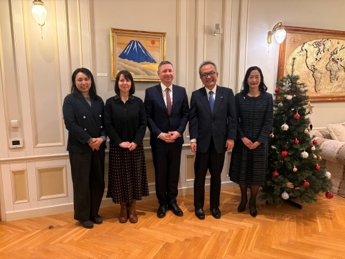 On January 7, Ambassador NAKAMURA Koichiro and Mrs. NAKAMURA hosted Mr. Tõnis Saar, Director of The NATO Cooperative Cyber Defence Centre of Excellence (CCDCOE) and his spouse Mrs. Kirtti Saar at the official Residence for an exchange of views.