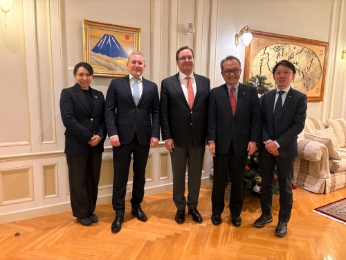 On January 9, Ambassador NAKAMURA Koichiro hosted Mr. Almann, Chairman of the Board of CybExer Technologies and Mr. Andrus Kivisaar, its CEO and Co-founder, at the official residence for an exchange of views.