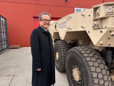 On April 1, Ambassador NAKAMURA Koichiro visited Milrem Robotics, the robotics and autonomous systems developer based in Estonia. During his visit he received a presentation on the company's products and activities from CEO Mr. Kuldar Väärsi and other executives. Afterwards, the Ambassador was guided by staff members to a demonstration of an unmanned ground vehicle (UGV) and to their manufacturing facilities.