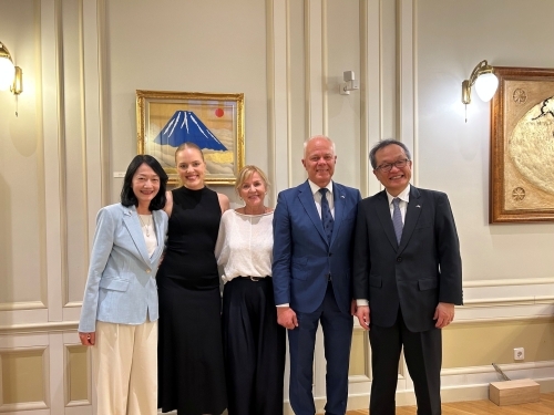 On April 13, Ambassador NAKAMURA Koichiro and Mrs. NAKAMURA hosted Mr. Toomas Kivimägi, First Vice-President of the Riigikogu, Ms. Anu Sommer and Ms. Lauren Kivimägi at the Official Residence for an exchange of views.
