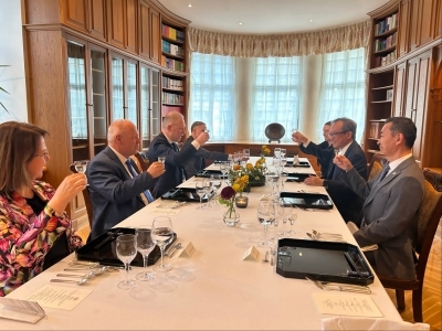 On April 14, Ambassador NAKAMURA Koichiro hosted Chairman Marko Mihkelson of the Foreign Affairs Committee, along with Members of the Riigikogu Henn Põlluaas, Eerik-Niiles Kross, and Ester Karuse, at the Official Residence for an exchange of views.