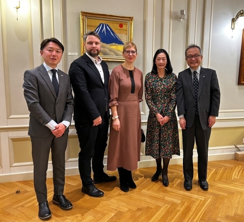 5. veebruaril kutsusid suursaadik NAKAMURA Koichiro ja pr NAKAMURA endise regionaal- ja põllumajandusministri pr Piret Hartmani ja tema elukaaslase hr Matthias Klitzschi ametlikku residentsi ning vahetasid mõtteid süvenevate Jaapani-Eesti kahepoolsete suhete ning siseriiklike ja rahvusvaheliste olukordade üle.
