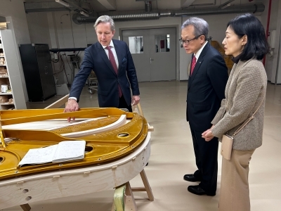 10月28日、中村耕一郎大使夫妻は、欧州を代表するエストニア・ピアノ社を訪問し、CEOのインドレク・ラウル博士の案内で、工場内を視察しました。