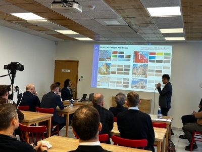本セミナーは本プロジェクトに参加するエストニアのモジュールハウス製造会社(Harmet社)へニチハの外壁材を初めて導入するにあたり、バルト三国のモジュールハウス製造会社、ウクラナ企業を招き実施されました。