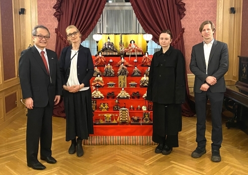 中村大使、ヒーオプ・エストニア芸術アカデミー学長との意見交換 令和8年3月3日 3月3日、中村耕一郎大使は、ヒルッカ・ヒーオプ・エストニア芸術アカデミー学長、シッレ・ピフラク同建築学部長、ビョルン・コープ同プロダクトデザイン学科主任教授を公邸に招き、日本の芸術系大学との交流の状況、日本とエストニアの芸術交流や同校と当館の今後の協力の可能性等について意見交換を行いました。