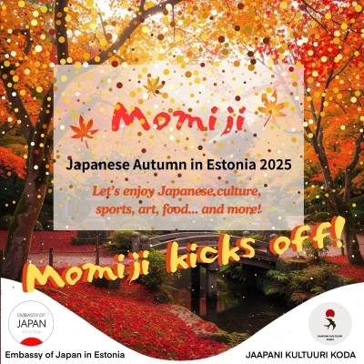 在エストニア日本国大使館は、日本文化の多様性と現代的な魅力をエストニアで広く発信するため、2025年9月1日から11月30日の期間、一連の日本関連イベント「Momiji – Japanese Autumn in Estonia 2025~Let’s enjoy Japanese culture, art, sports!~」を日本・エストニア文化交流協会(Jaapani Kultuuri Koda)とともに開催いたします。本イベントは、芸術の秋、スポーツの秋にふさわしい日本の豊かな感性や、日本の芸術・精神性に触れる機会を提供し、両国間の相互理解と友好を一層深めることを目的としています。